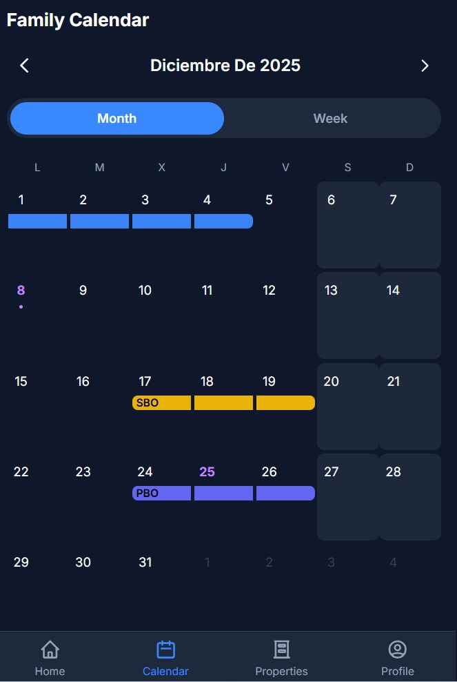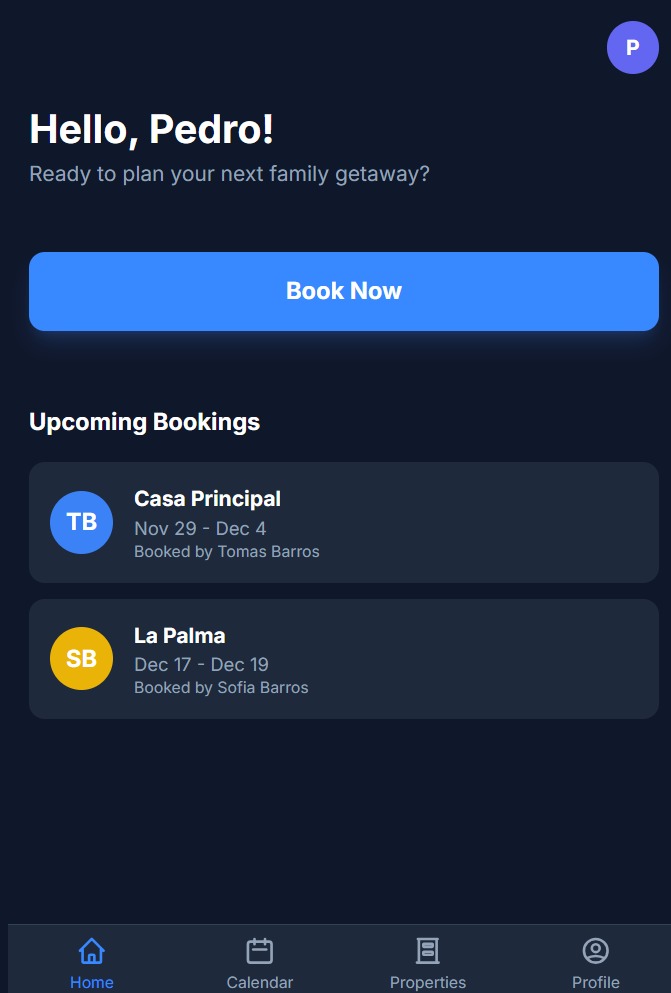 Use the shared calendar to select and book available dates for your family property, ensuring everyone is on the same page.
